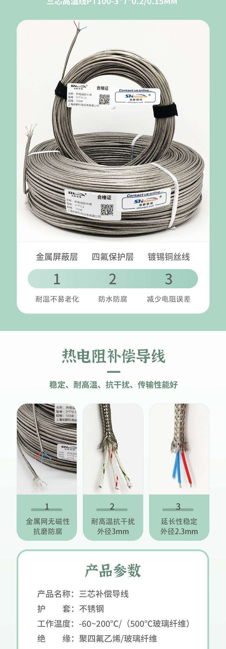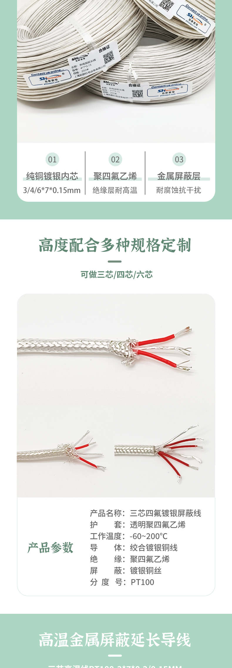 • 特氟龍外皮鉑電阻延長線 PT100補(bǔ)償導(dǎo)線溫度傳感器四氟三芯細(xì)白線