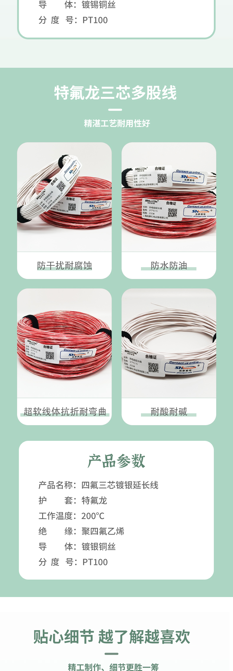 特氟龍外皮鉑電阻延長線 PT100補(bǔ)償導(dǎo)線溫度傳感器四氟三芯細(xì)白線