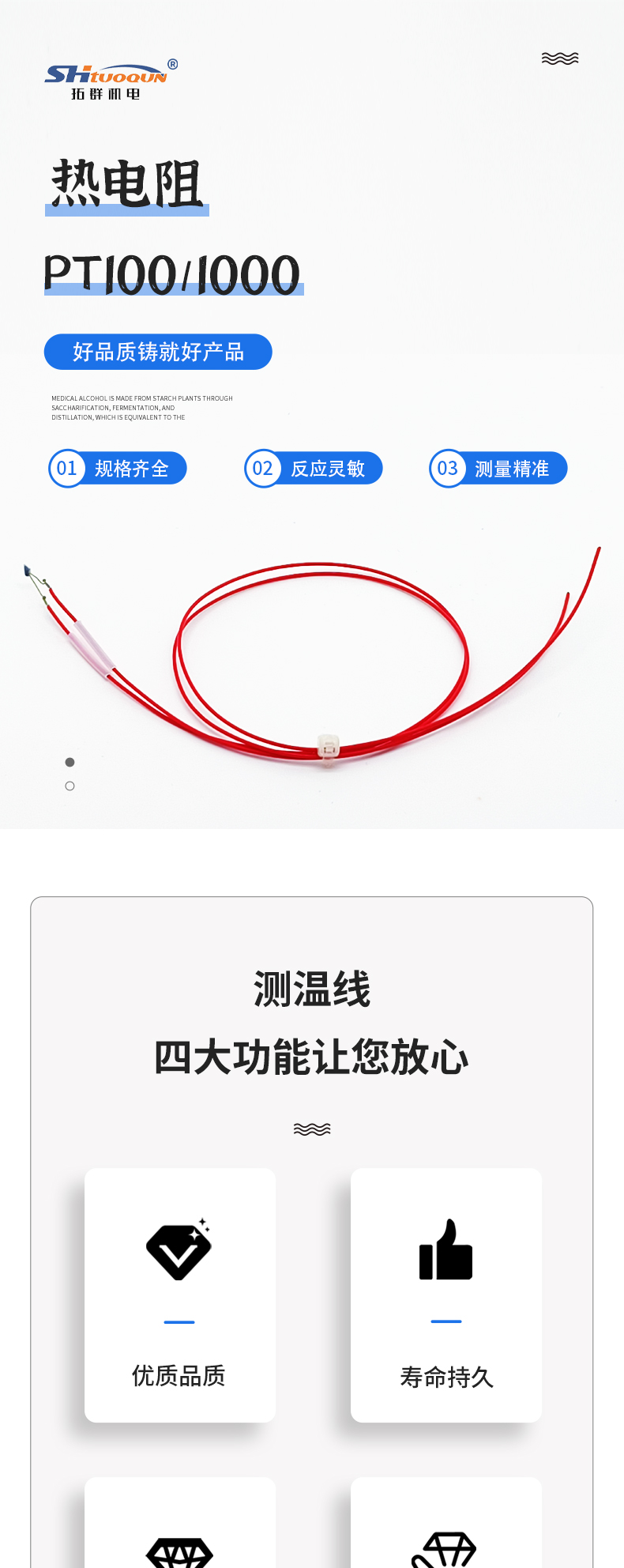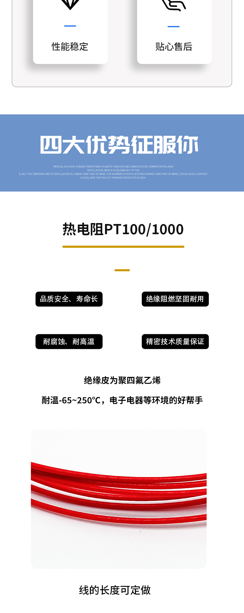• 薄膜鉑熱電阻 林電工PT100/PT1000 裸露式溫度傳感器高溫延長線