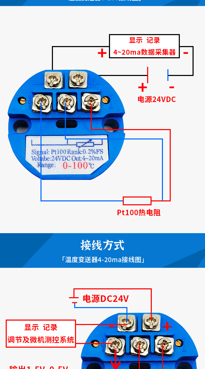 導(dǎo)軌式溫度變送器pt100一體化模塊4-20ma熱電阻隔離變送器熱電偶
