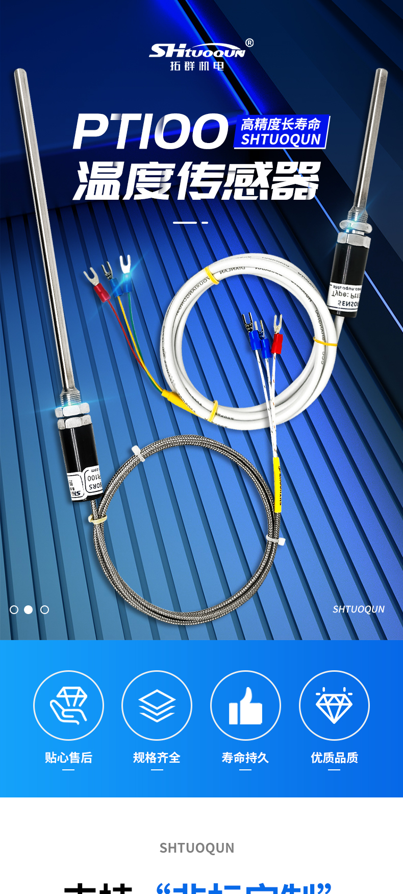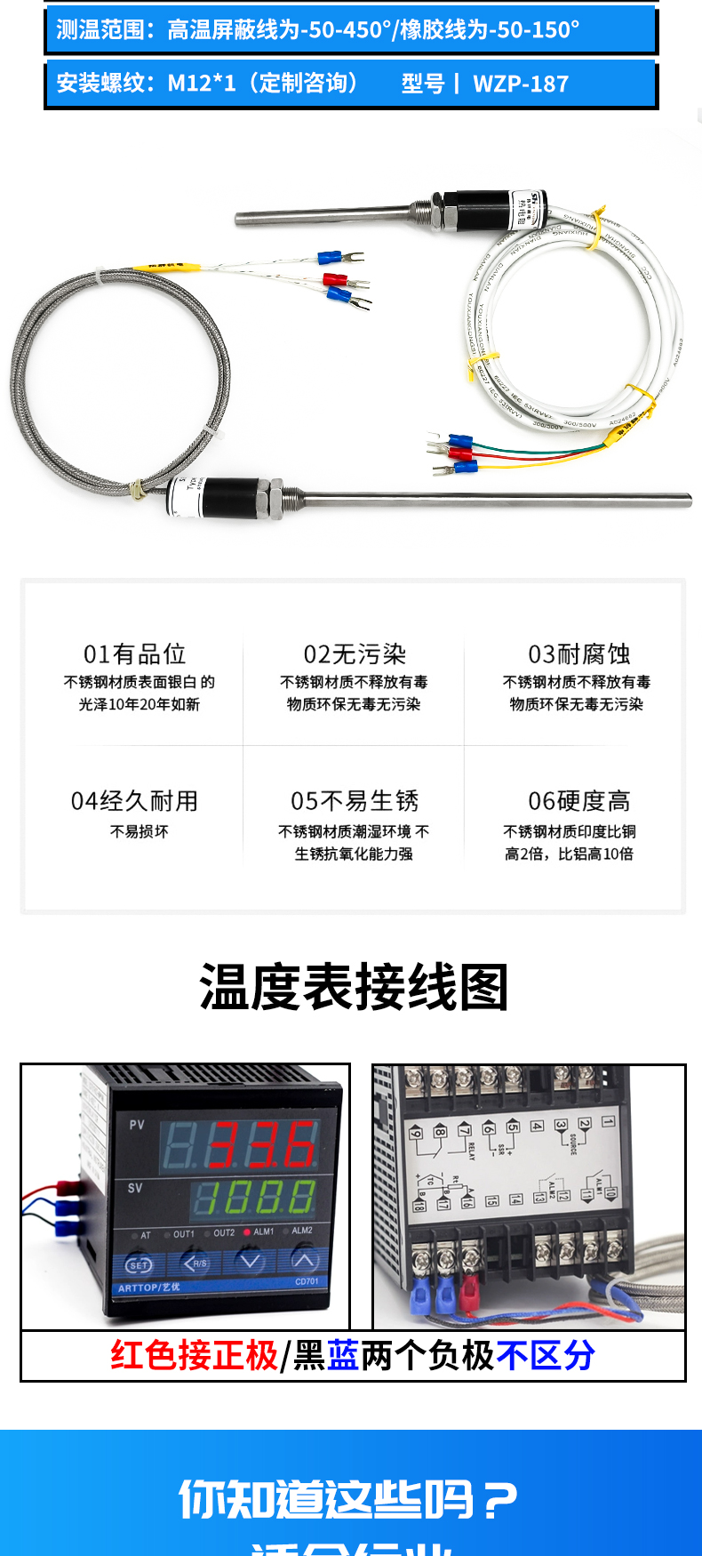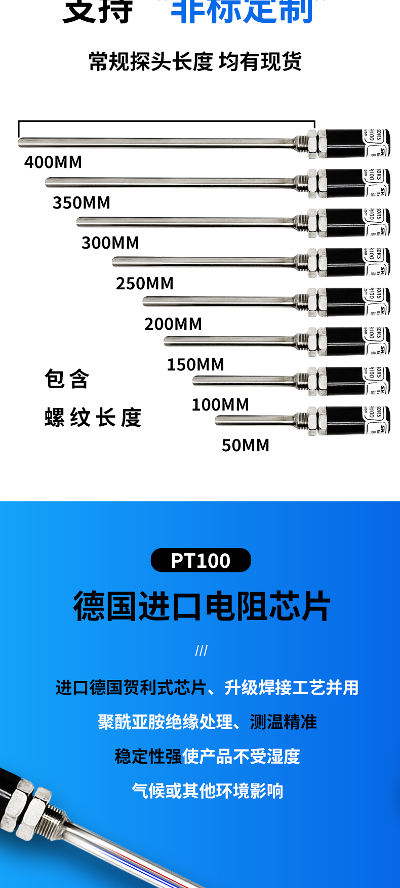 • PT100溫度傳感器鉑熱電阻WZP-187不銹鋼探針式防水溫度探頭感溫棒