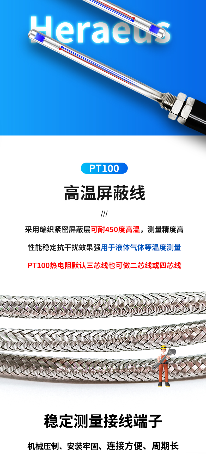 不銹鋼探針/金屬編織線/M12螺紋