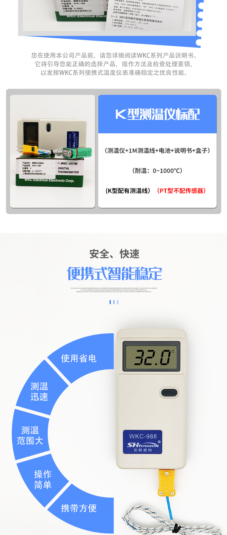 • WKC-988 Pt100高精度便攜式數(shù)字測溫儀溫度表點溫計熱力供暖等