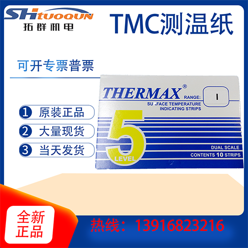 溫度美牌THERMAX系列英國TMC熱敏試紙采用溫度測量的新工藝,不同于傳統(tǒng)工藝是在一張小貼紙上布有一系列方格或圓點,來表示不同的溫度,當(dāng)測試點的溫度大于該點的溫度,顏色變?yōu)楹谏蚱渌伾>涂梢耘袛辔矬w所經(jīng)歷的溫度。而不用長時間在旁監(jiān)測。也可以用溫度試紙做交貨是的證據(jù),這在食品和藥品行業(yè)得到廣范的應(yīng)用。還有特殊行業(yè)用的測溫紙,如紡織行業(yè)用熱敏試紙。